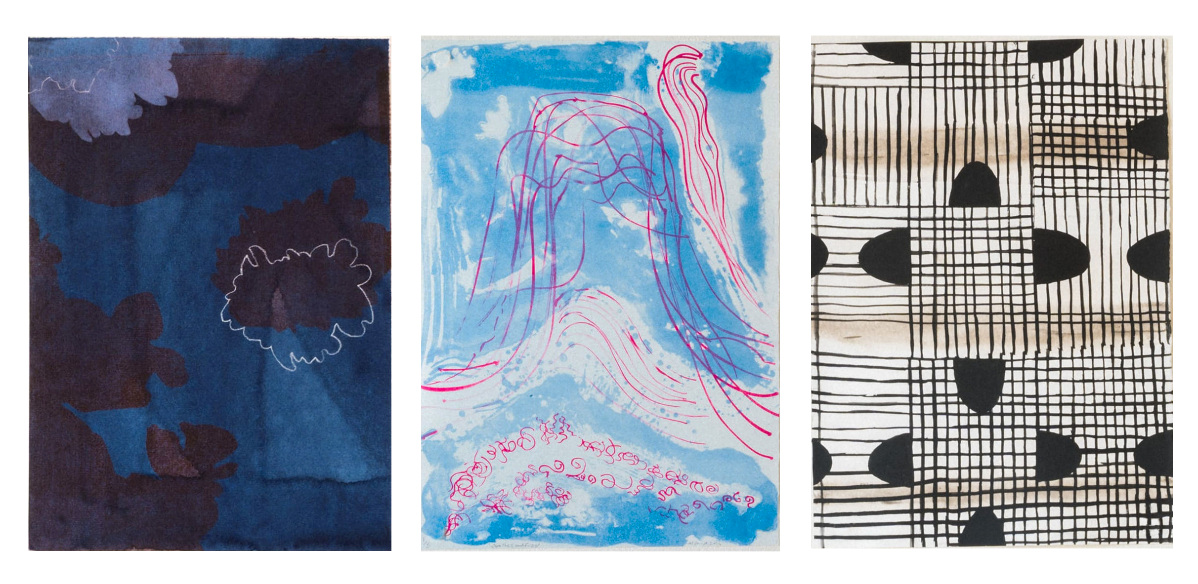 Floating Worlds, our latest exhibition, features the work of three British contemporary artists who work across drawing, print and paint (from left to right): Janie George, Matthew Swift and Esmé Clutterbuck.