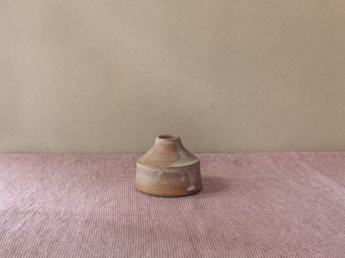 Hand-thrown glazed stoneware bud vase or ink well. Diameter of base 75mm, height 70mm. Made in Kent.