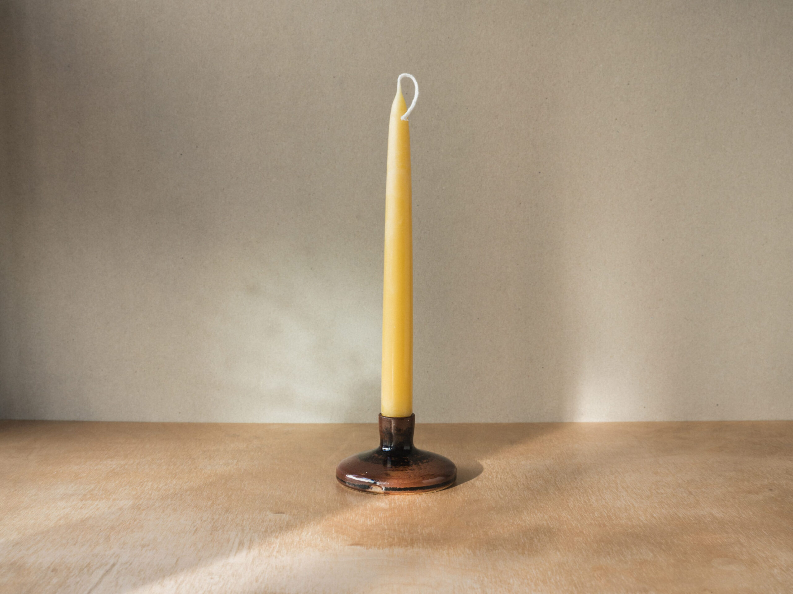Hand-thrown candleholder, approximately 75mm wide x 60mm high, made in Kent.