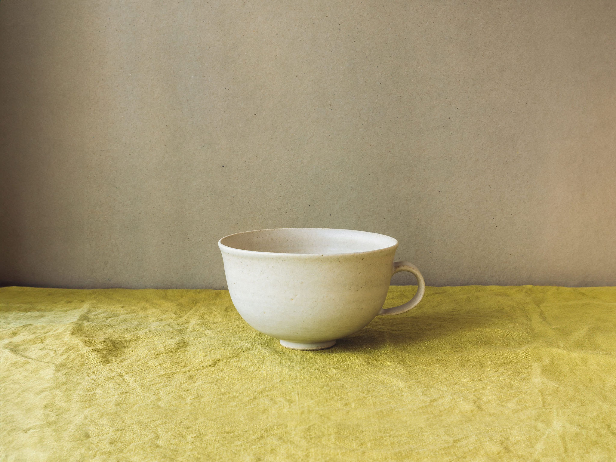 Hand-thrown stoneware cup, dolomite glazed in a gas-fired kiln. Approximately 130mm x 75m high, made in Kent.