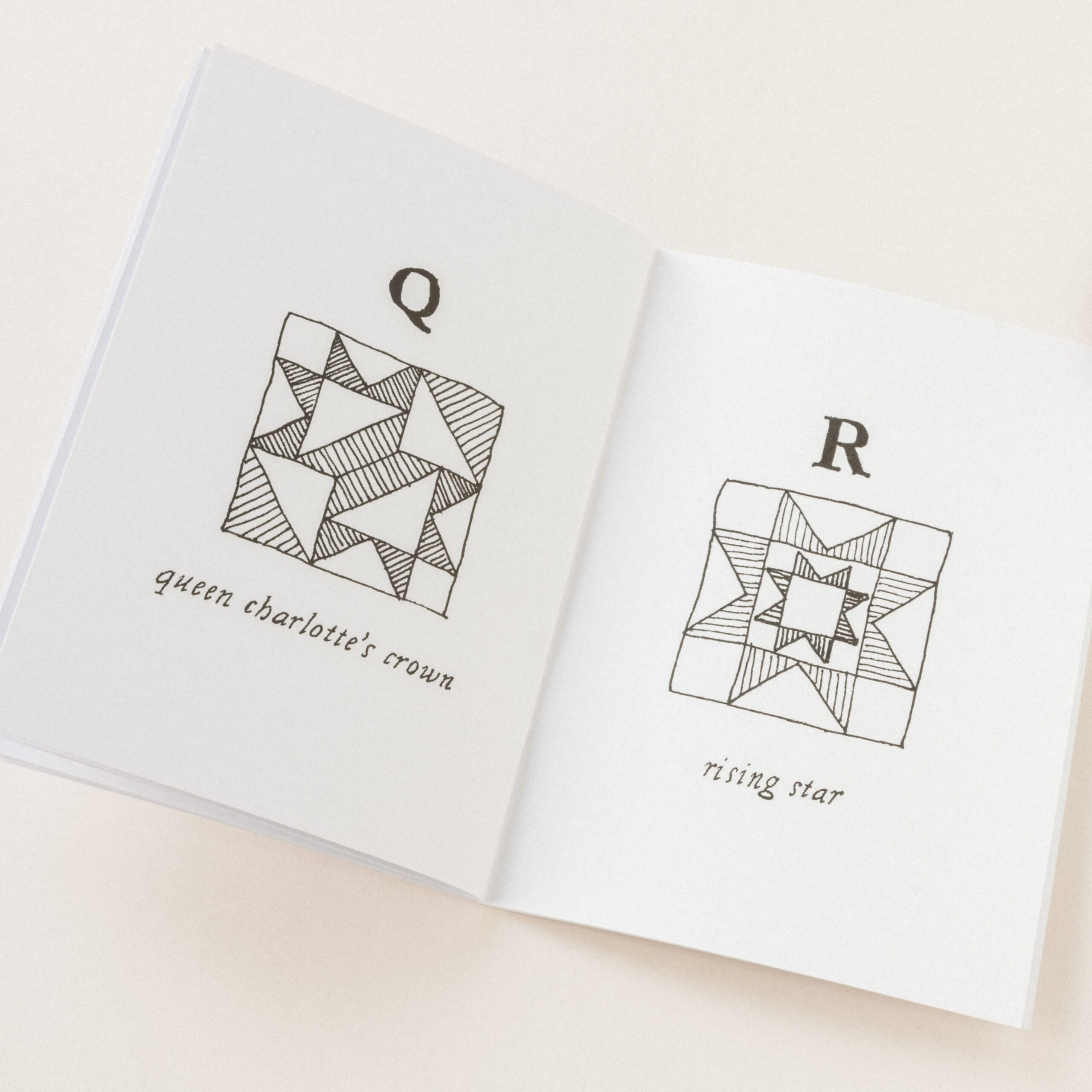 From rooting around in quilt history books, Connecticut-based quilter Bailey Raha created this beautiful hand-drawn zine. It presents an alphabetical collection of quilt blocks, some common, some less so.