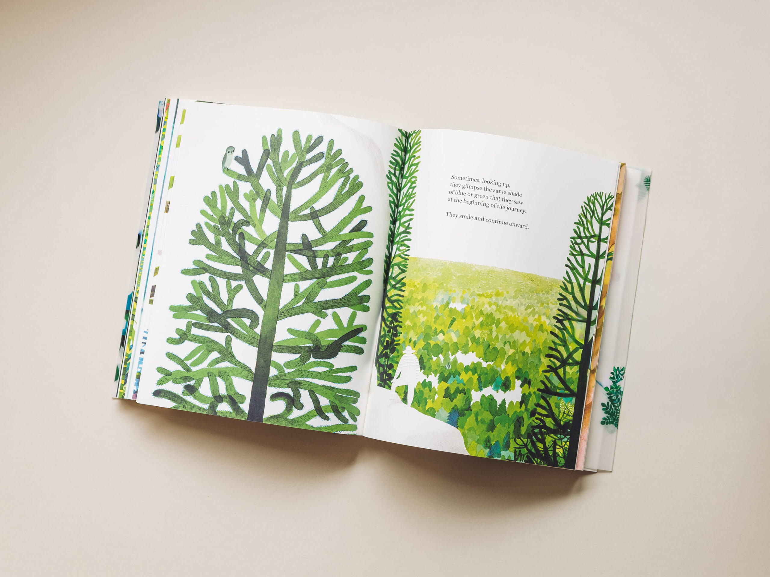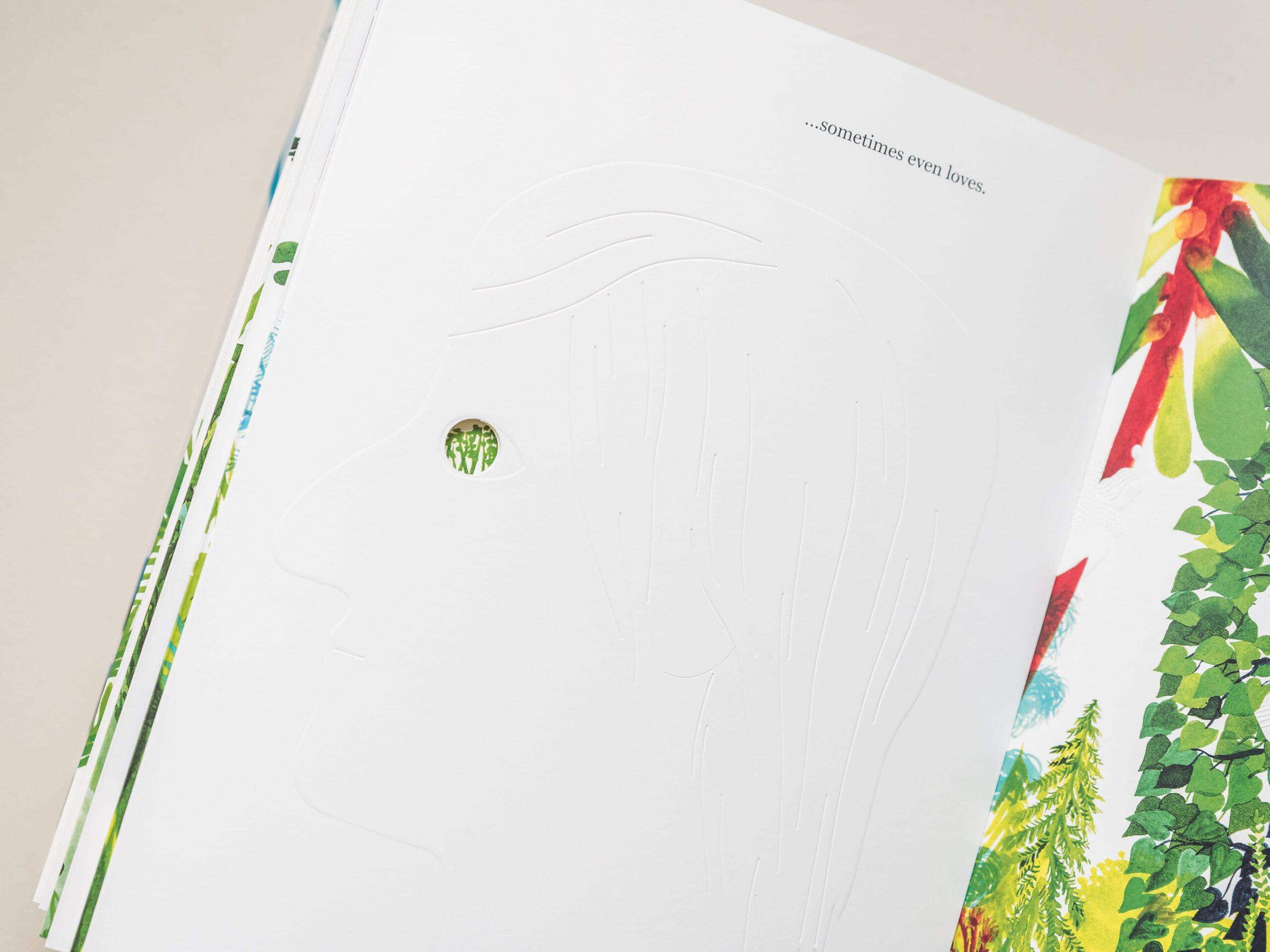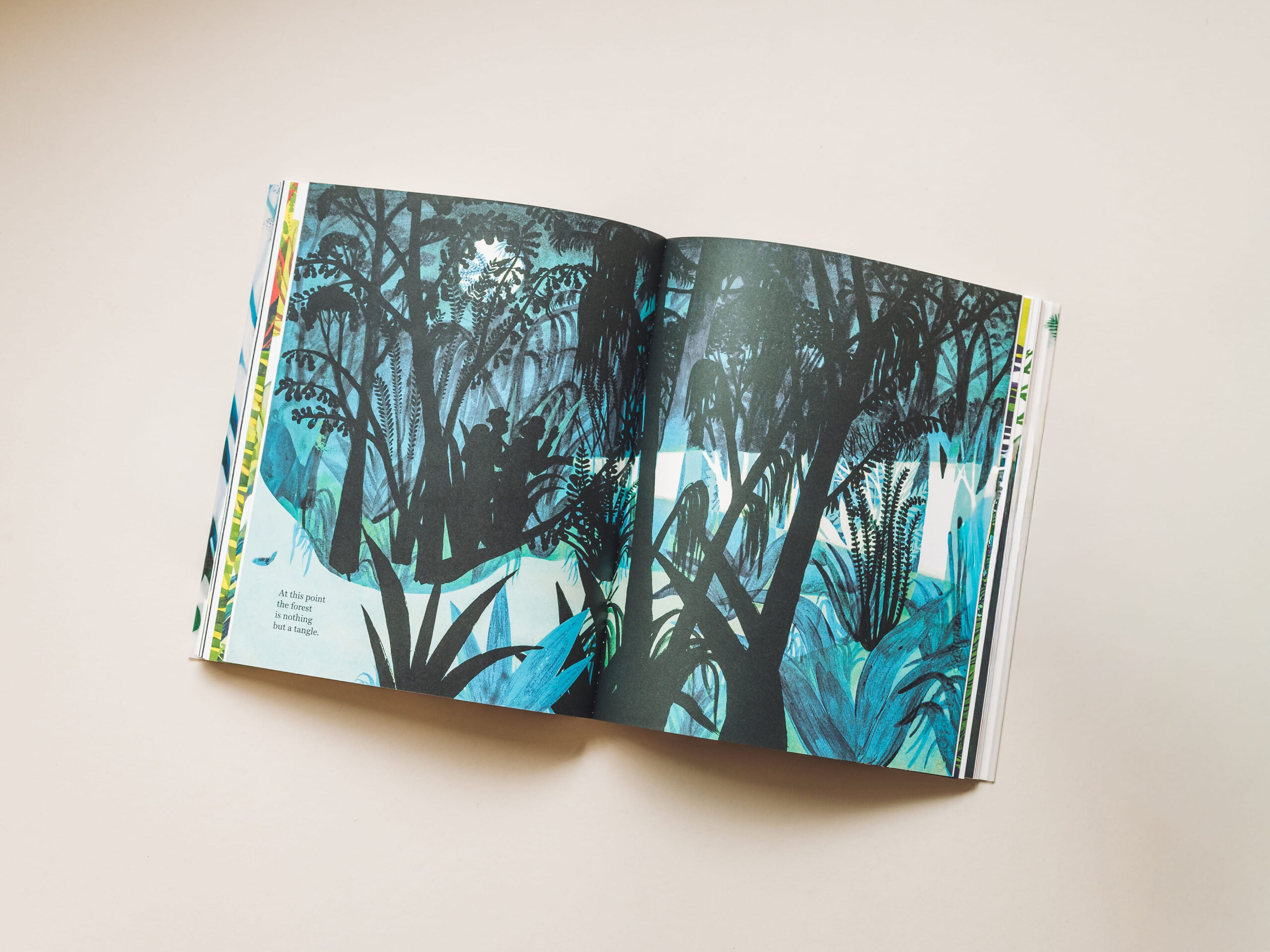 A lyrical book about the adventures of life, The Forest is also a magnificent visual work, both painterly and a technical feat of paper engineering. Here, sensory experience and the textures of the material world are rendered through die-cuts, embossing, cutouts, and two gatefolds. Constructed in the tradition of Japanese binding, the book is wrapped in translucent velum that gives the lush cover illustration the aura of a mist-enveloped forest early in the morning. Less a book than a tactile expedition into the existential wilderness, the journey unfolds across time and space, in “an enormous, ancient forest that has not yet been fully explored.” A beautifully considered work.