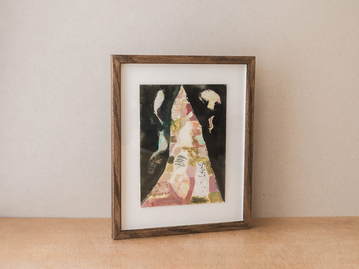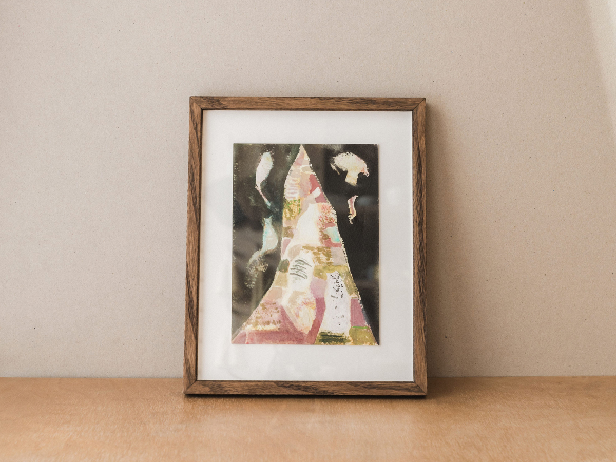 Original watercolour, signed on reverse, framed in a stained oak frame. Artwork size 200mm x 280mm, frame size 220mm x 270mm.