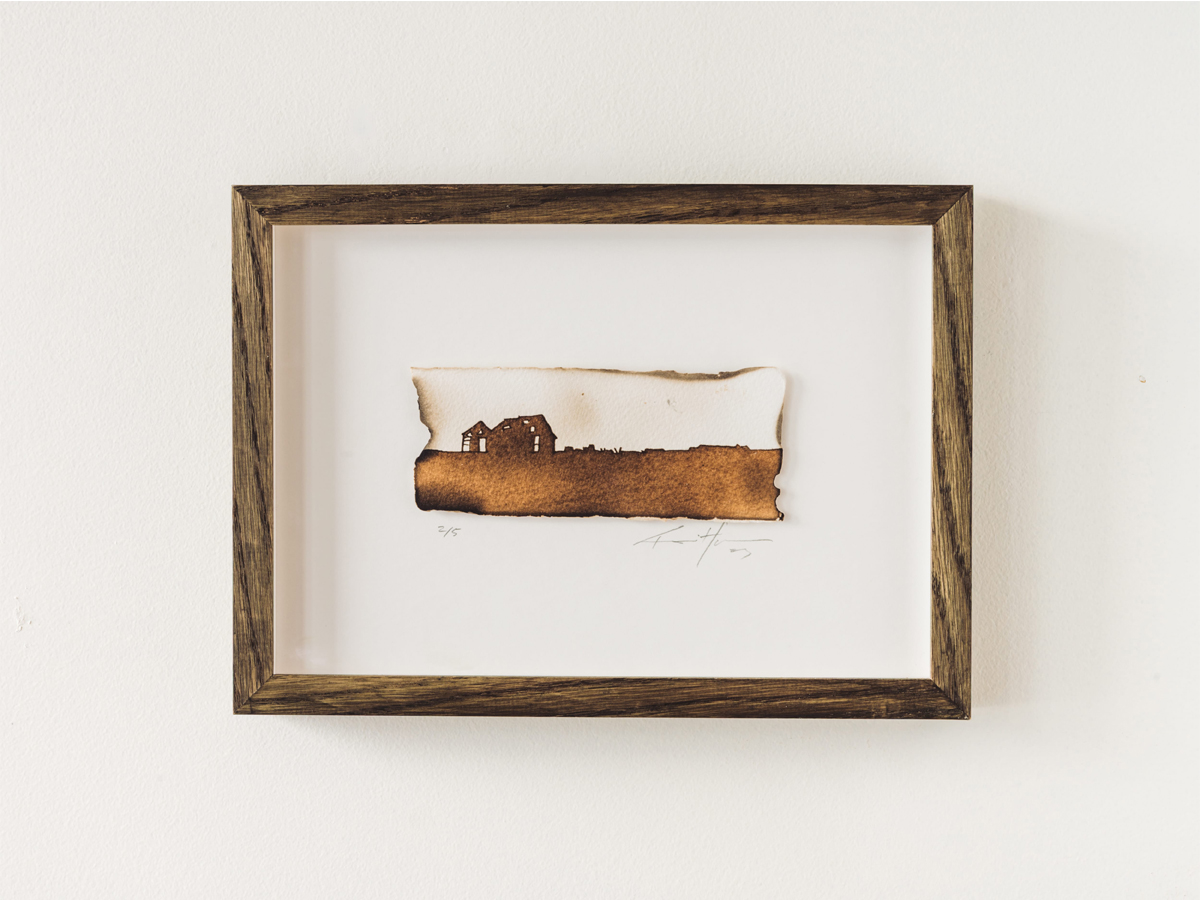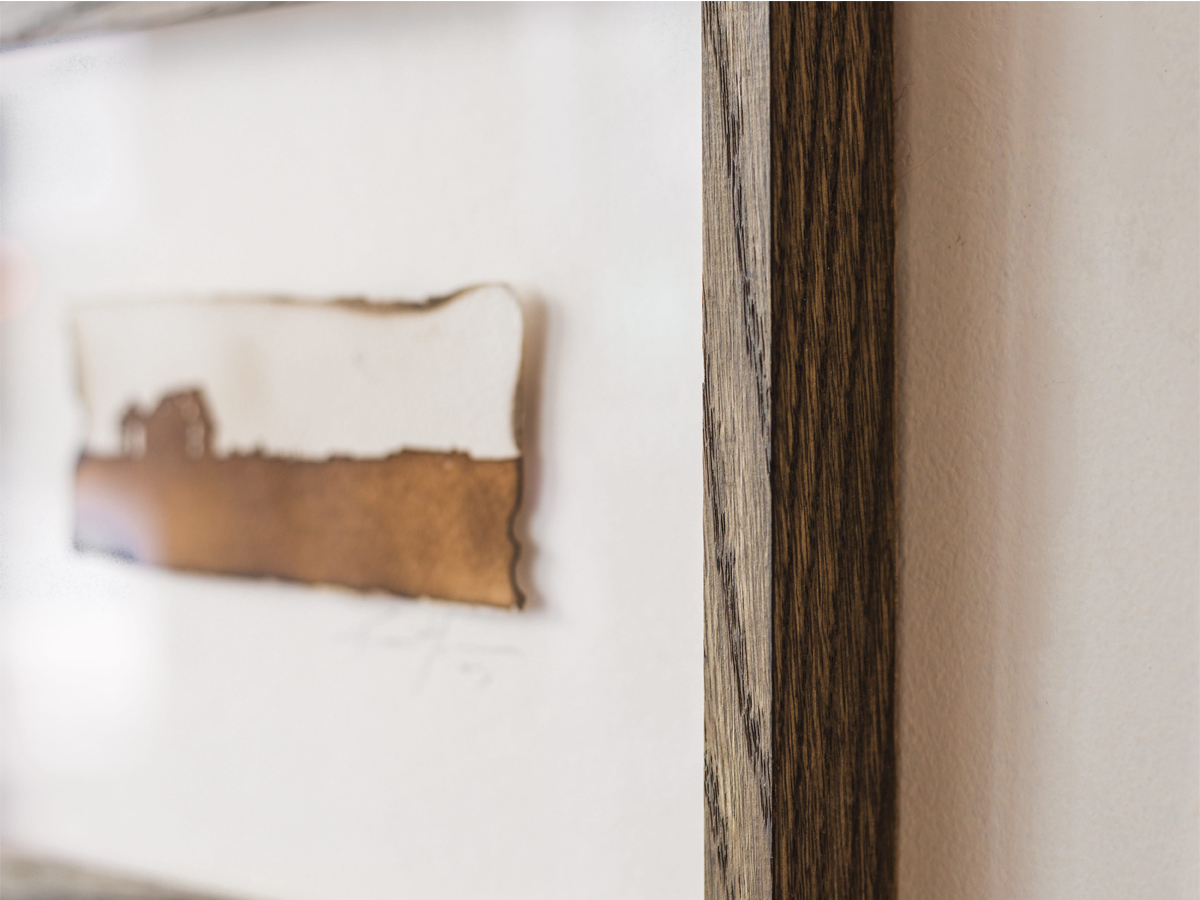 Fire Etching—Aburidashi on Somerset paper, signed limited edition of 5, available framed in a stained oak frame, or unframed. Artwork size 145mm x 60mm, frame size 285 x 205mm.