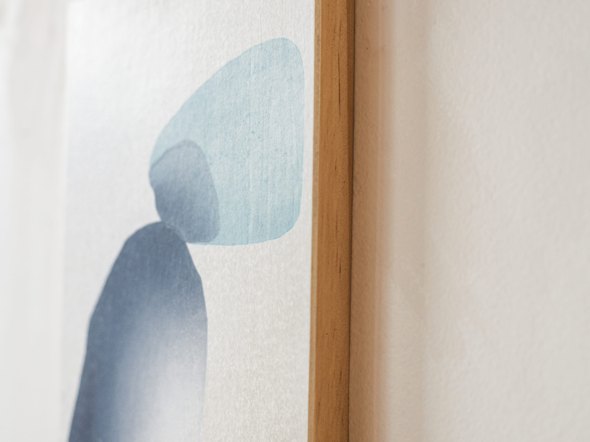 Mokuhanga (Japanese woodblock print), finished with UV archival spray and cold wax. Numbered and signed in pencil on reverse of cradled plywood panel. Limited edition of 8, size 150mm x 210mm x 20mm.