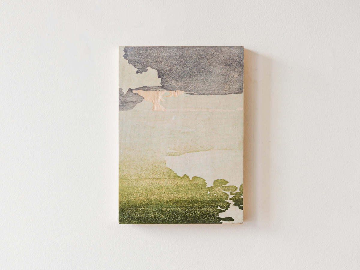 Mokuhanga (Japanese woodblock print) with carved plywood, treated with archival anti-UV spray and finished with layers of polished cold wax. Fi likes the idea that her prints can exist as objects without additional glass and framing.