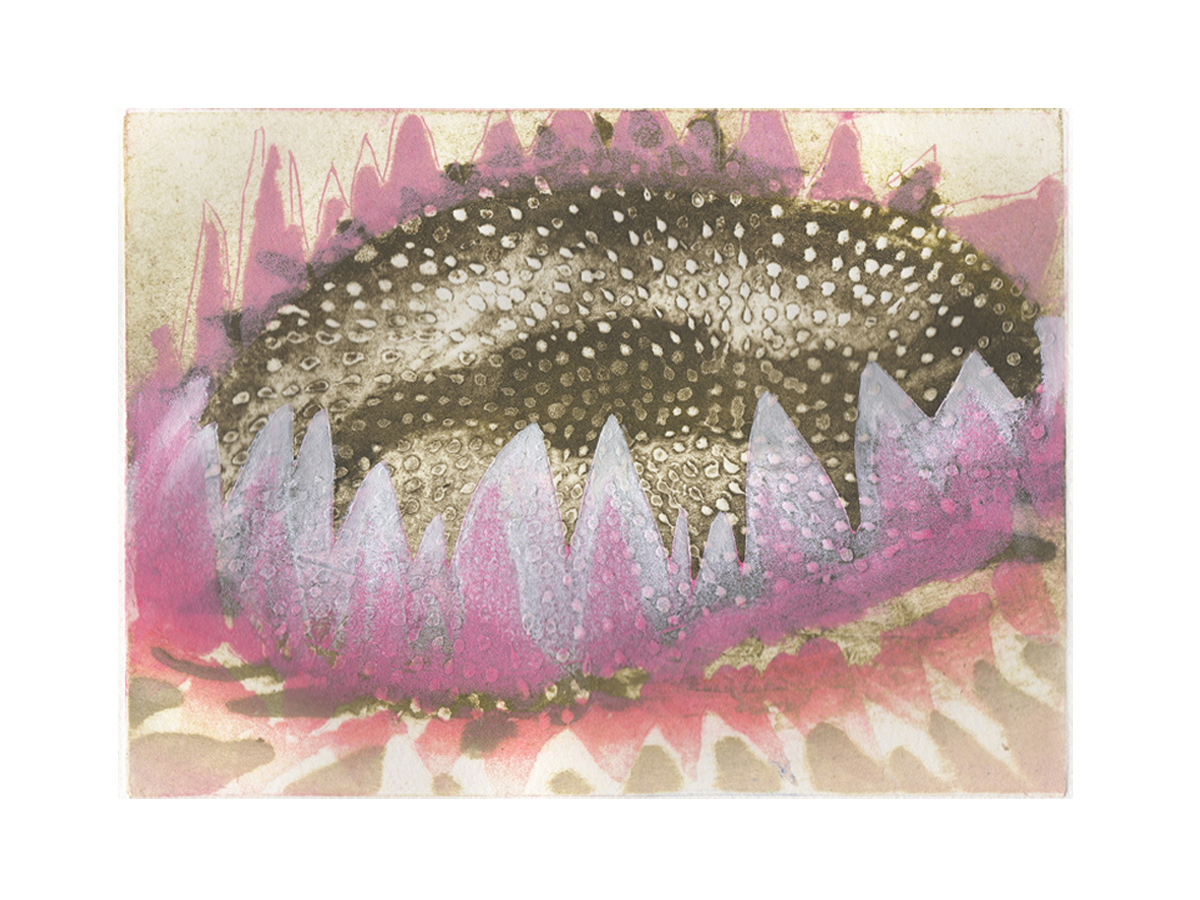 Collagraph and hand-coloured on Somerset 300gsm paper. Edition of 25. Numbered, titled and signed in pencil on the paper border below the impression. Paper size 400mm wide x 330mm high, image size 240mm wide x 180mm high.
