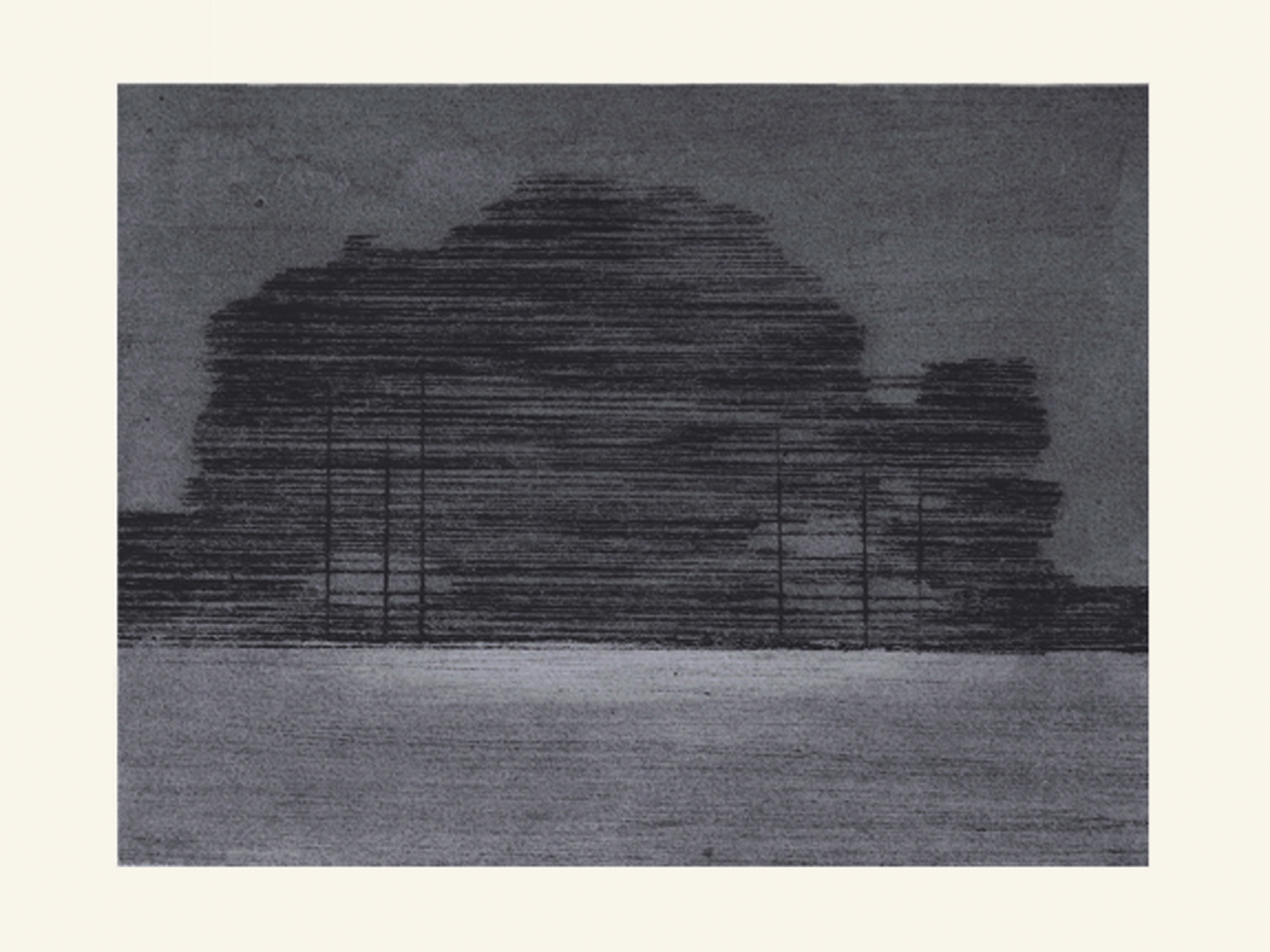 Drypoint, sandpaper, printed on painted paper with Sennelier ink. Limited edition of 10. Signed, numbered and titled in pencil on the paper border below thew impression. Paper size 240mm wide x 180mm high, drypoint image size 95mm wide x 70mm high.