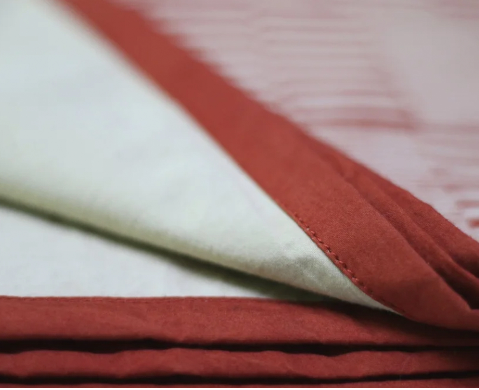 This throw is designed by Louisa Loakes, printed with a natural dye from the root of the Madder plant (Aal); a traditional colour used in Indian block printing.