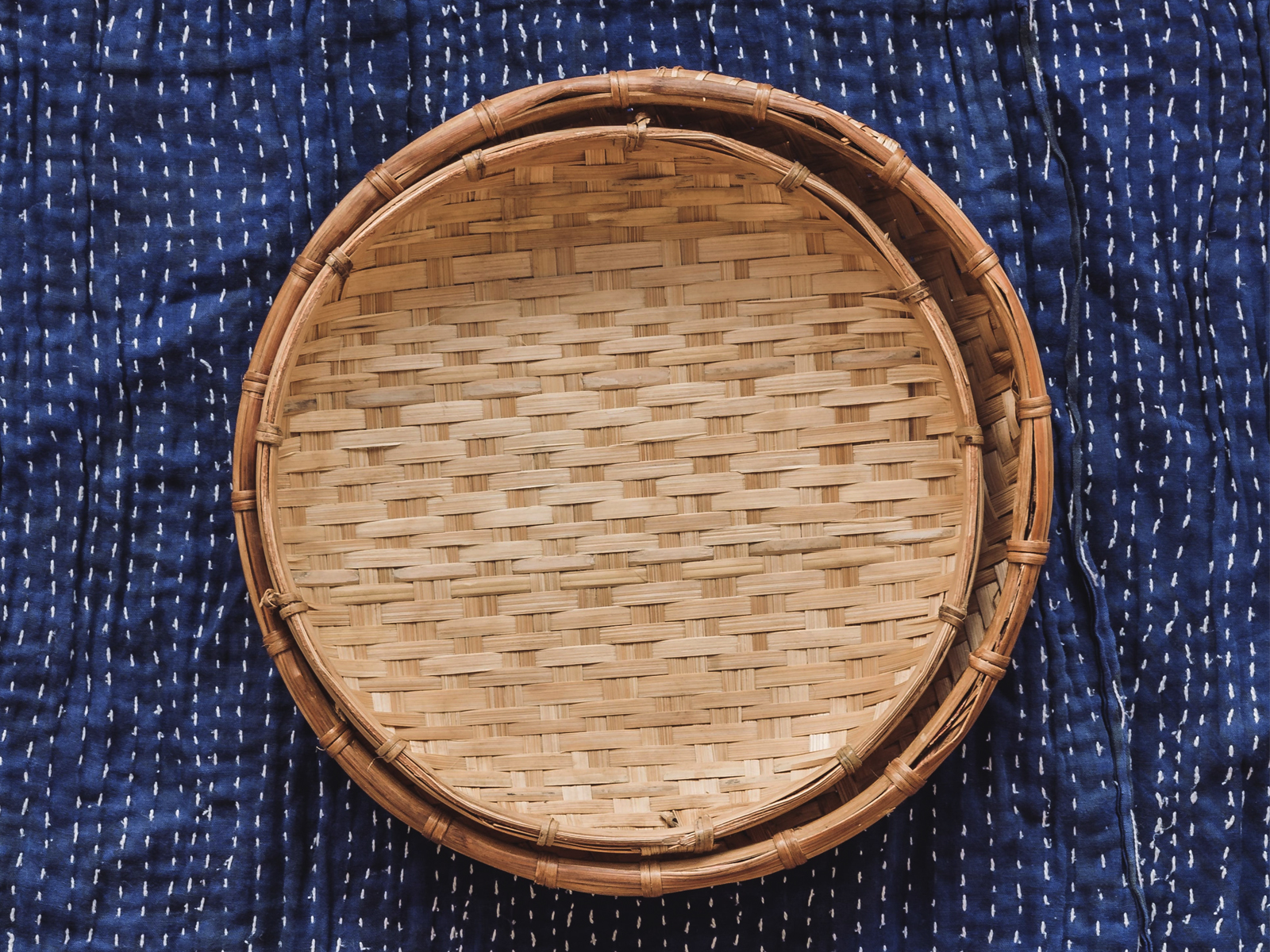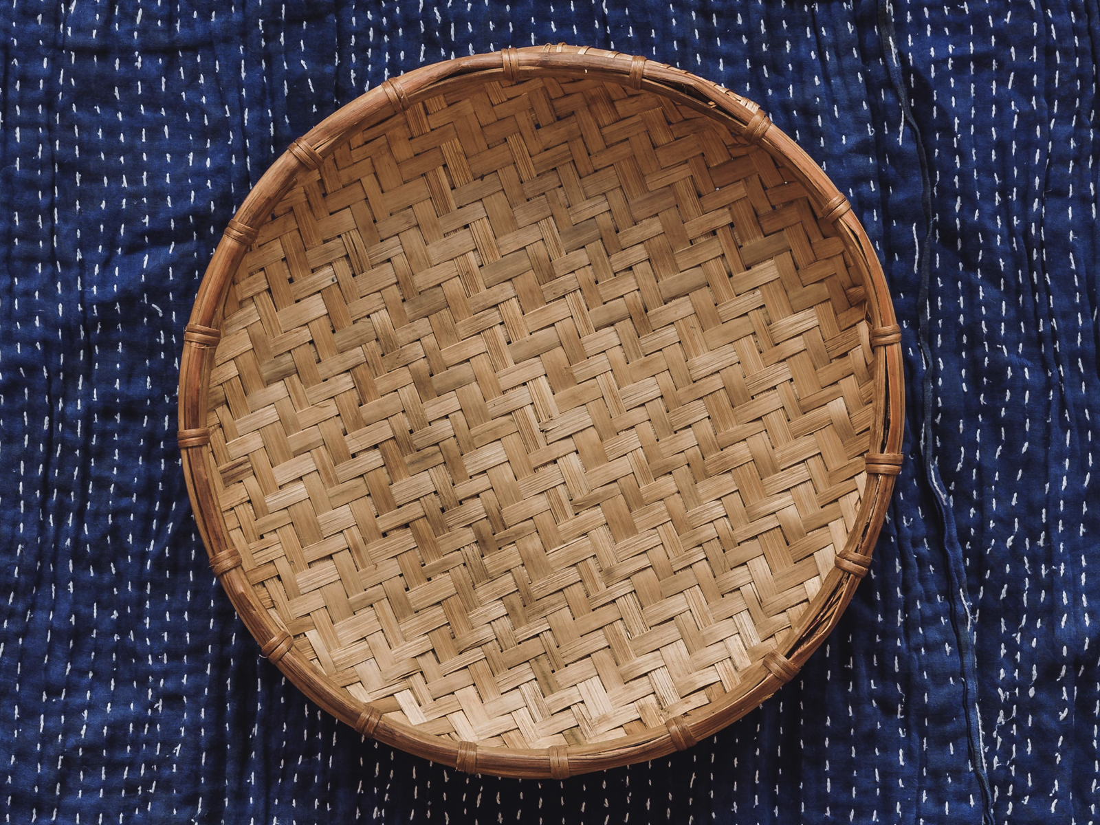 Hand-woven bamboo tray, each one being unique and slightly variable in it’s weave pattern and size. Traditionally, these trays are used as a way of drying cut and foraged herbs in Laos. Can be put to a number of different uses, such as displaying fruit or dried goods.