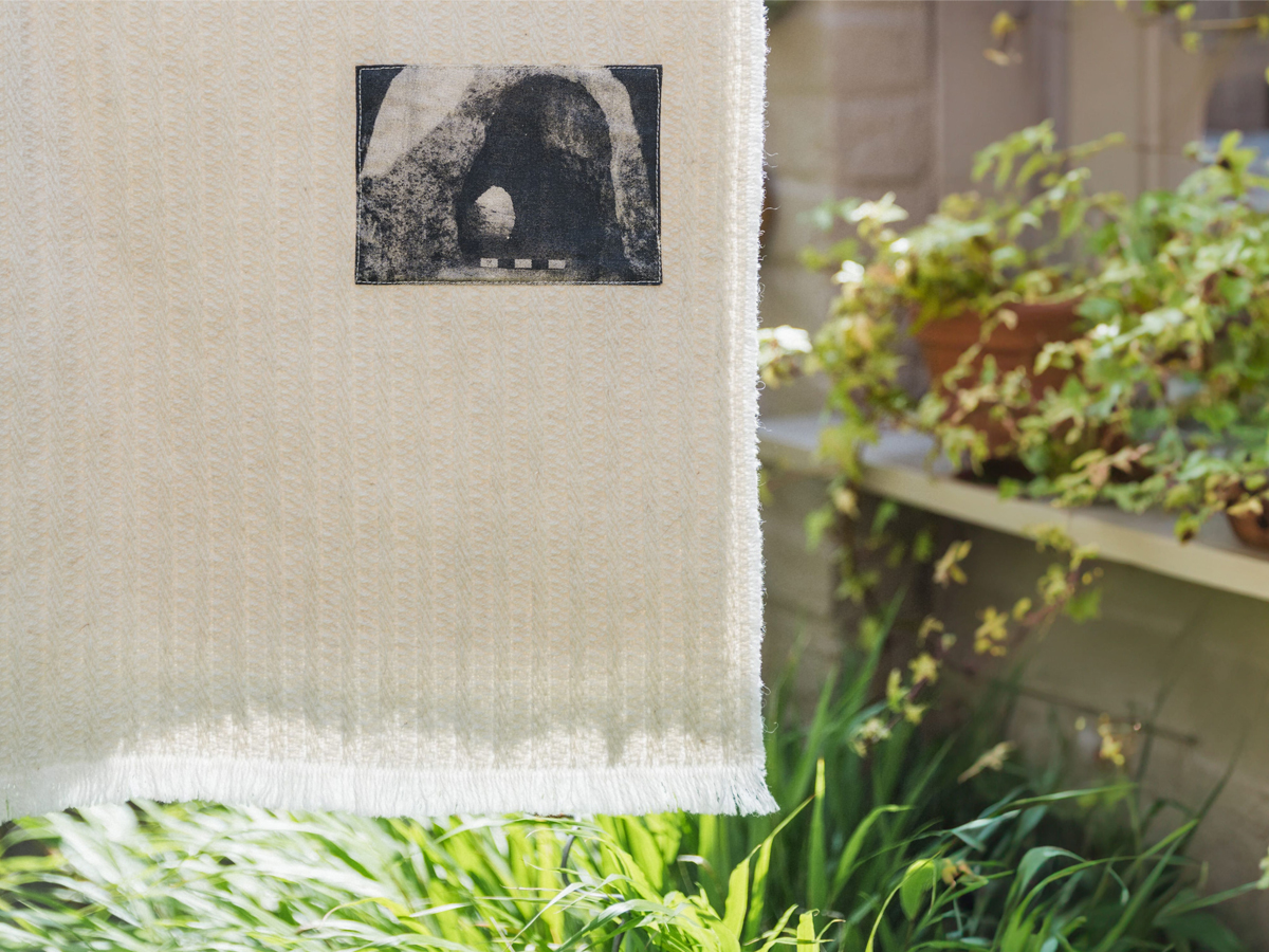 The Pont-d’Arc wrap/throw is inspired by a natural bridge in the Ardèche in France. The pattern represents a pathway, with a bridge between the textures of wool.